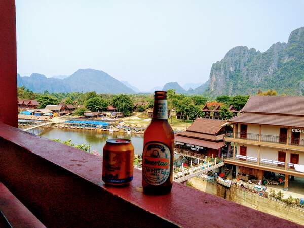 続いてはヒッピーの街として知られる、バンビエンにバスで移動。バス移動する際の費用や出発場所、注意事項などを載せています。またバンビエンでは市内中心部を散策した模様とパリピな旅行者にオススメのゲストハウスについても紹介しています。